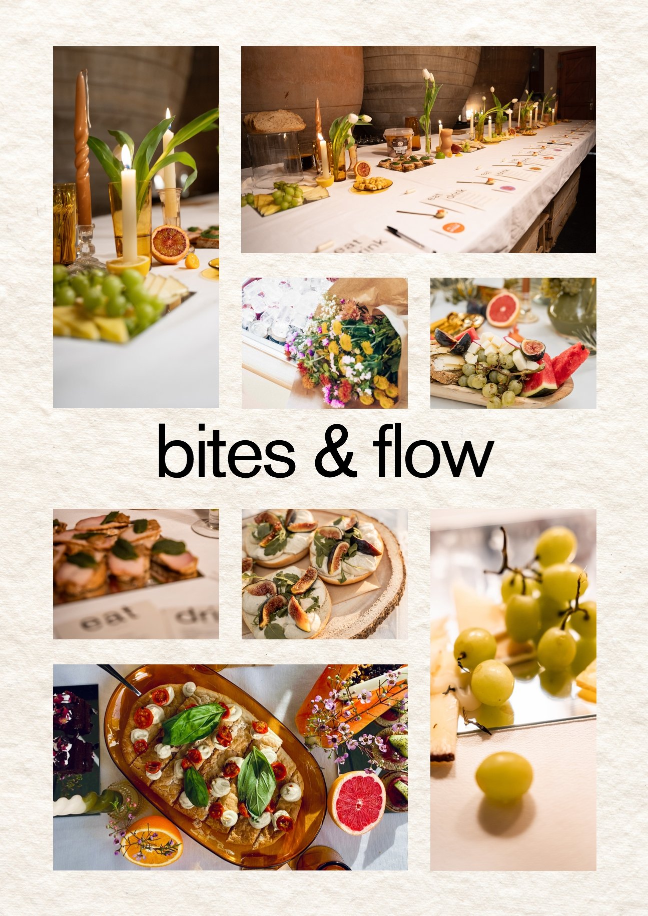 Haz una selección de tus bocados favoritos, nosotras cocinamos y te lo llevamos al lugar del evento. Montamos una mesa de ensueño con flores y mucho flow & TASTE.