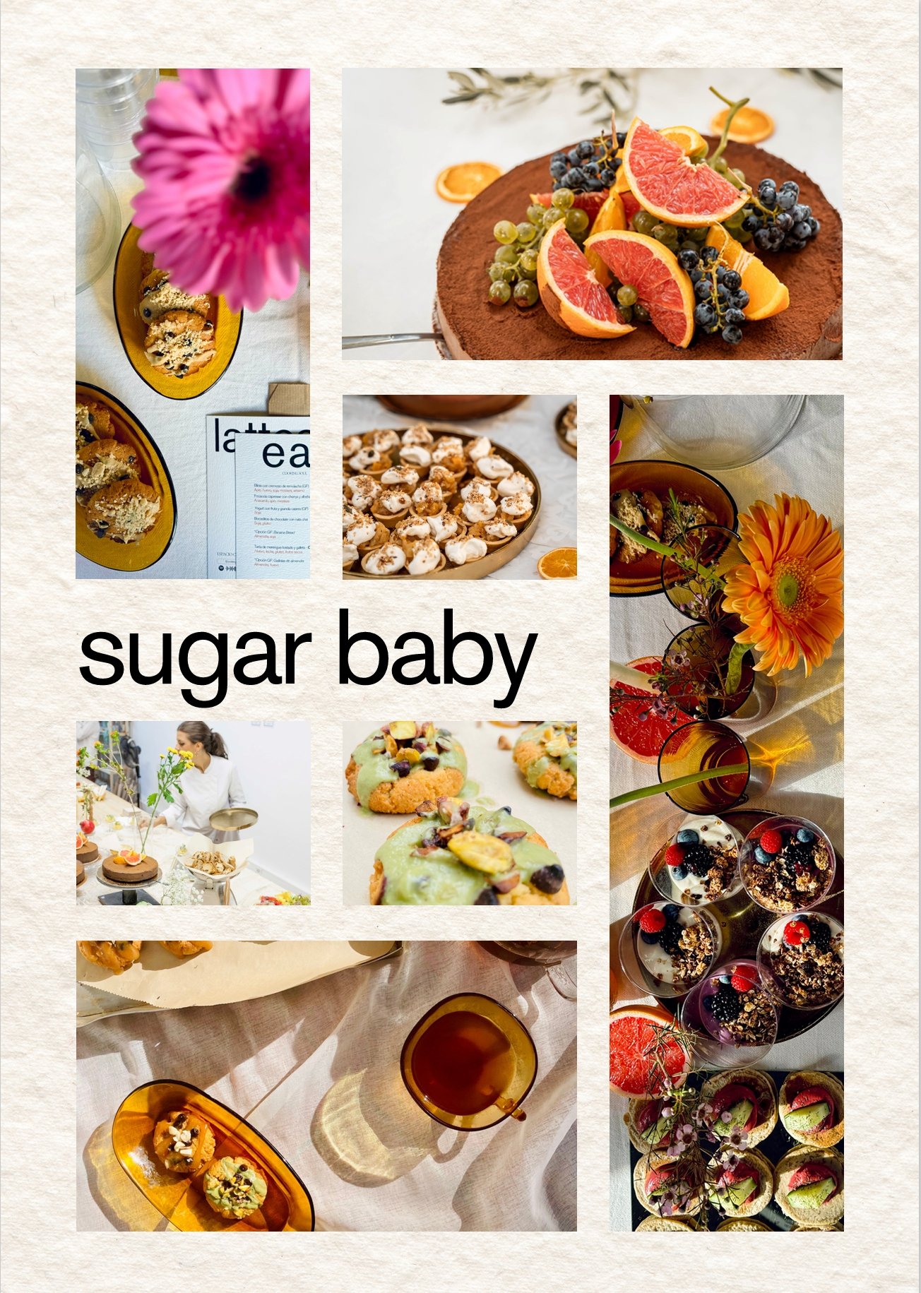Todas nuestras elaboraciones pueden ser 100% veganas, sin azúcar, integrales y sin gluten (aunque no son aptas para celiacos ya que existe contaminación cruzada). Las opciones sin gluten, integrales y las 100% sin azúcar tendrán un suplemento de 5€.
